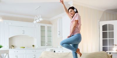 Boost your mood by popping on some lively music while you throw the windows wide open. Try Spotify “Mood Booster” playlist to put a spring in your step.